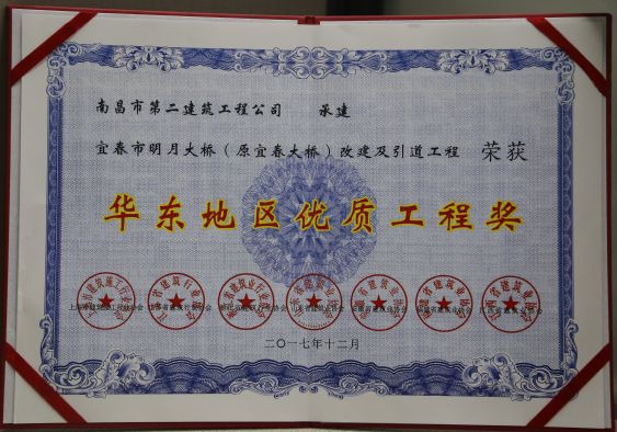 新年伊始,公司項(xiàng)目就迎來(lái)了開(kāi)門紅。公司承建的宜春市明月大橋改建及引道工程榮獲華東地區(qū)優(yōu)質(zhì)工程獎(jiǎng)。