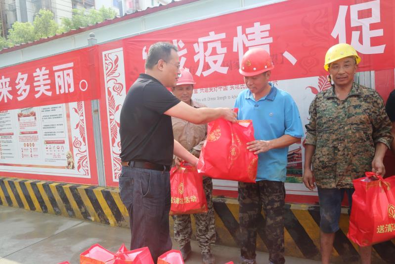 入夏以來,南昌旅游集團積極開展“戰疫情、促文明、保安康”送清涼活動,7月28日上午,南旅集團黨委書記、董事長、總經理李明,黨委副書記李虹虹,黨委委員、副總經理陳皓等領導,冒著高溫,來到我市重點工程“繩金塔民俗風情街”項目,送上綠豆、蓮子等愛心禮包,向戰斗在一線建設的干部職工表示慰問。李明在聽完工程建設情況匯報后,仔細詢問了現場工人工作、生活狀況,叮囑項目部要一手抓好工程建設,一手抓好防疫防暑,切實關心工人身心健康,確保職工安全生產,文明施工,為我市創建健康、文明城市作貢獻。公司黨委書記、總經理龔戩等班子成員全程陪同。